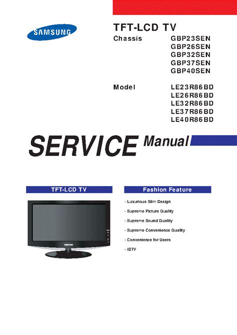 Presently you are looking with regard to an Samsung Le23r86bd Service Manual Repair Guide example of which we provide here within some form of document formats such as PDF, Doc, Strength Point, and in addition images of which will make it simpler for you to create an Samsung Le23r86bd Service Manual Repair Guide yourself. For a clearer look, you are able to open some examples below. Each of the good examples about Samsung Le23r86bd Service Manual Repair Guide with this web site, we get from a number of sources so you can create a better file of your own.